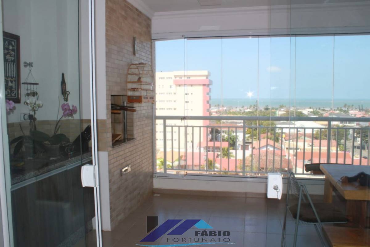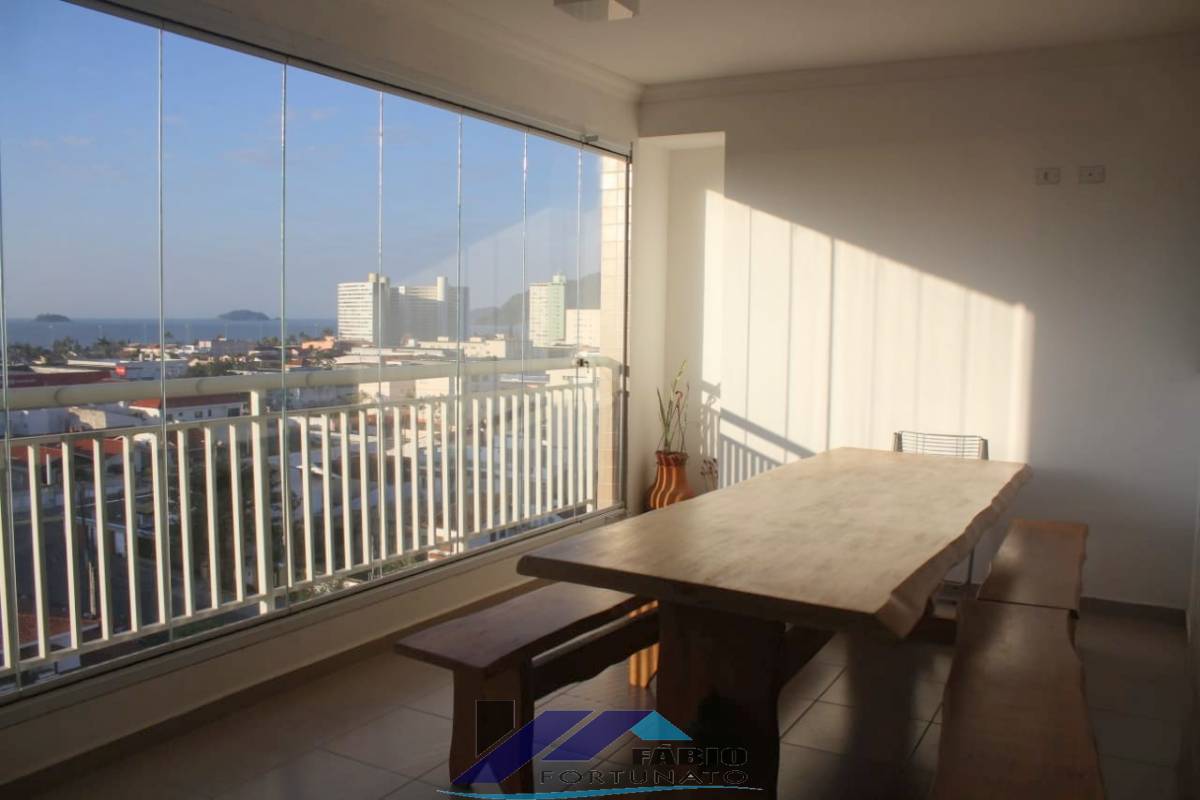 Belíssimo apartamento em estado de novo, varanda gourmet com churrasqueira e linda vista para o mar e para o morro da Juréia, fino acabamento com lustres em todos os ambientes, 03 dormitórios sendo 02 suítes, sala com 02 ambientes, cozinha com pia e balcão de granito, fogão cooktop, a gás, com 05 bocas da marca Electrolux, coifa/exaustor Fischer, lavanderia, janelas em alumínio branco e vidro transparente, banheiros com box de vidro Blindex, móveis planejados na sala, área de churrasqueira, banheiros e dormitórios, 02 vagas de garagem área de despejo com armário no subsolo, aquecimento a gás nos chuveiros, torneiras e cozinha. Condomínio com 44 apartamentos sendo 04 por andar, elevador social e de serviço, depósito individual no subsolo com armário, salão de festas, piscina adulto e infantil, quiosque gourmet com churrasqueira e forno para pizza, rede de água, luz e gás individualizados, portão automatizado, portaria e zelador. Aproximadamente 300 metros do Supermercado Extra, agências bancárias, farmácia, restaurantes, lanchonetes, Lojas Americanas, ponto de ônibus, escolas, Prefeitura, Fórum e comércio em geral. Ao lado de tudo.