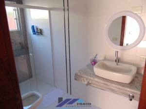 Sobrado em Peruíbe, com 04 suítes, sendo 02 no pavimento térreo e 02 no pavimento superior, sendo 01 com hidromassagem, sala ampla com mezanino, cozinha americana com balcão de granito, área de serviço coberta com banheiro, ótima iluminação natural, ótima ventilação, vista para o mar, ampla área de lazer com piscina, espaço gourmet com churrasqueira e cozinha de verão, garagem com espaço para 05 veículos. Bairro de ótimo padrão, próximo a mercado, restaurante, pizzaria e comércio em geral. Menos de 100 metros da praia.