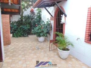 Casa térrea com 03 dormitórios, sala com 02 ambientes, cozinha americana, mezanino, edícula com lavanderia fechada, 01 dormitório, banheiro e depósito, lindo jardim, garagem, espaço para piscina. Aproximadamente 700 metros do Mercado Extra, próximo a ponto de ônibus, restaurante, pizzaria, academia de ginástica e comércio em geral. Apenas 500 metros da praia.