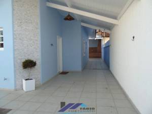Casa térrea em Peruíbe, em perfeito estado de conservação, com 03 dormitórios (com ventilador de teto) sendo 01 suíte, sala com 02 ambientes, cozinha, banheiro social piscina com cascata, churrasqueira com área gourmet, edícula com um dormitório e banheiro, garagem coberta. Aproximadamente 750 metros do Supermercado Extra, próximo à academia de ginástica, restaurantes, padaria, sorveteria e comércio em geral. Apenas 900metros da praia.